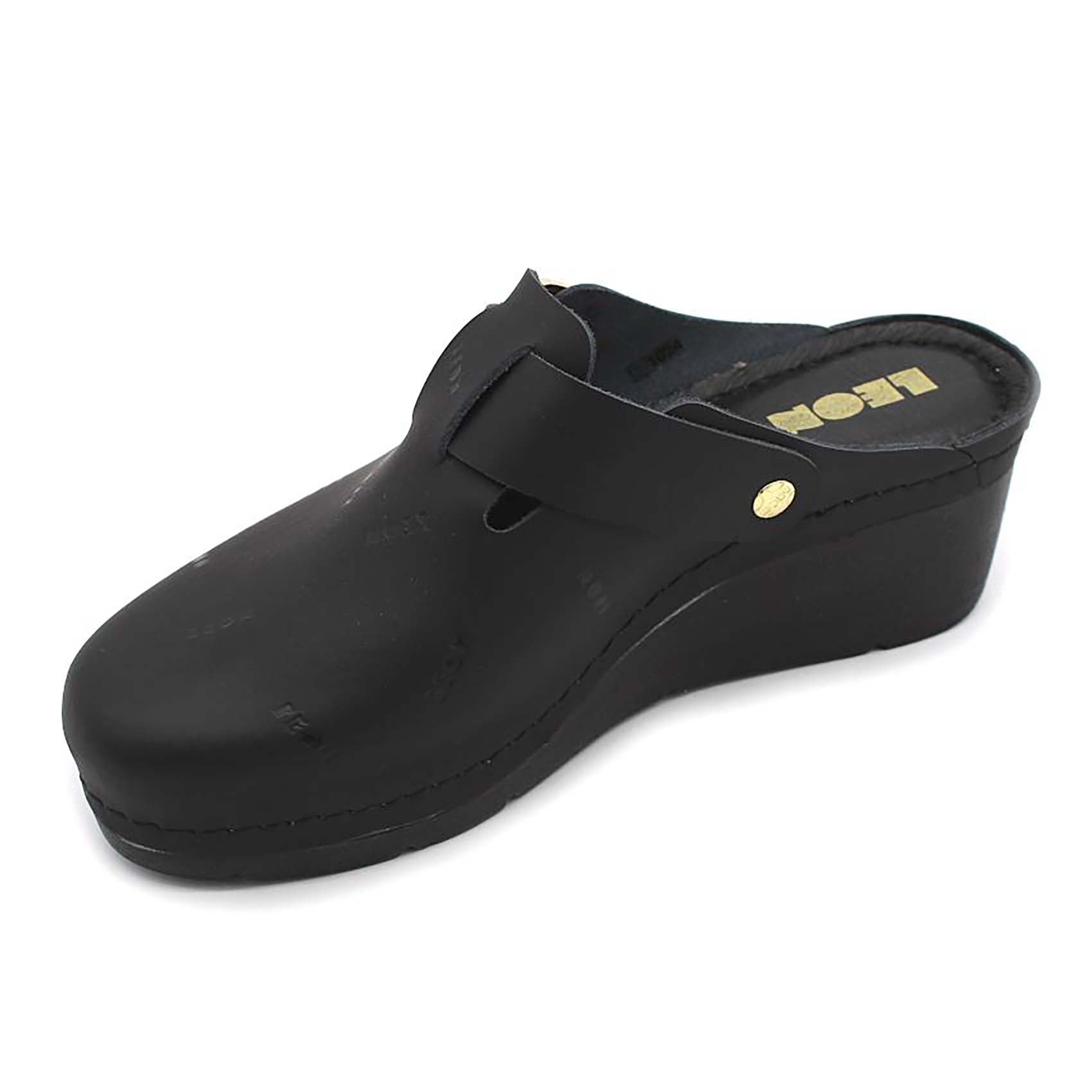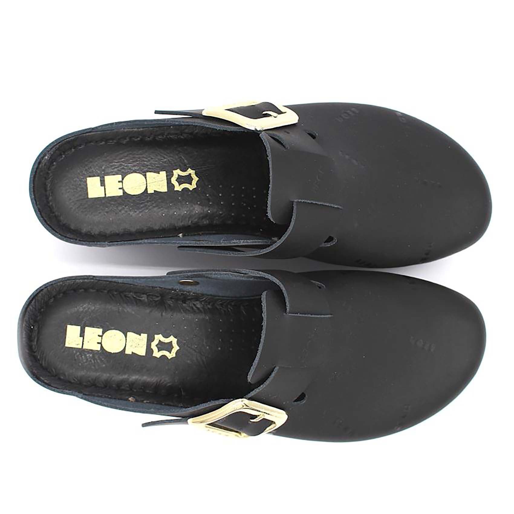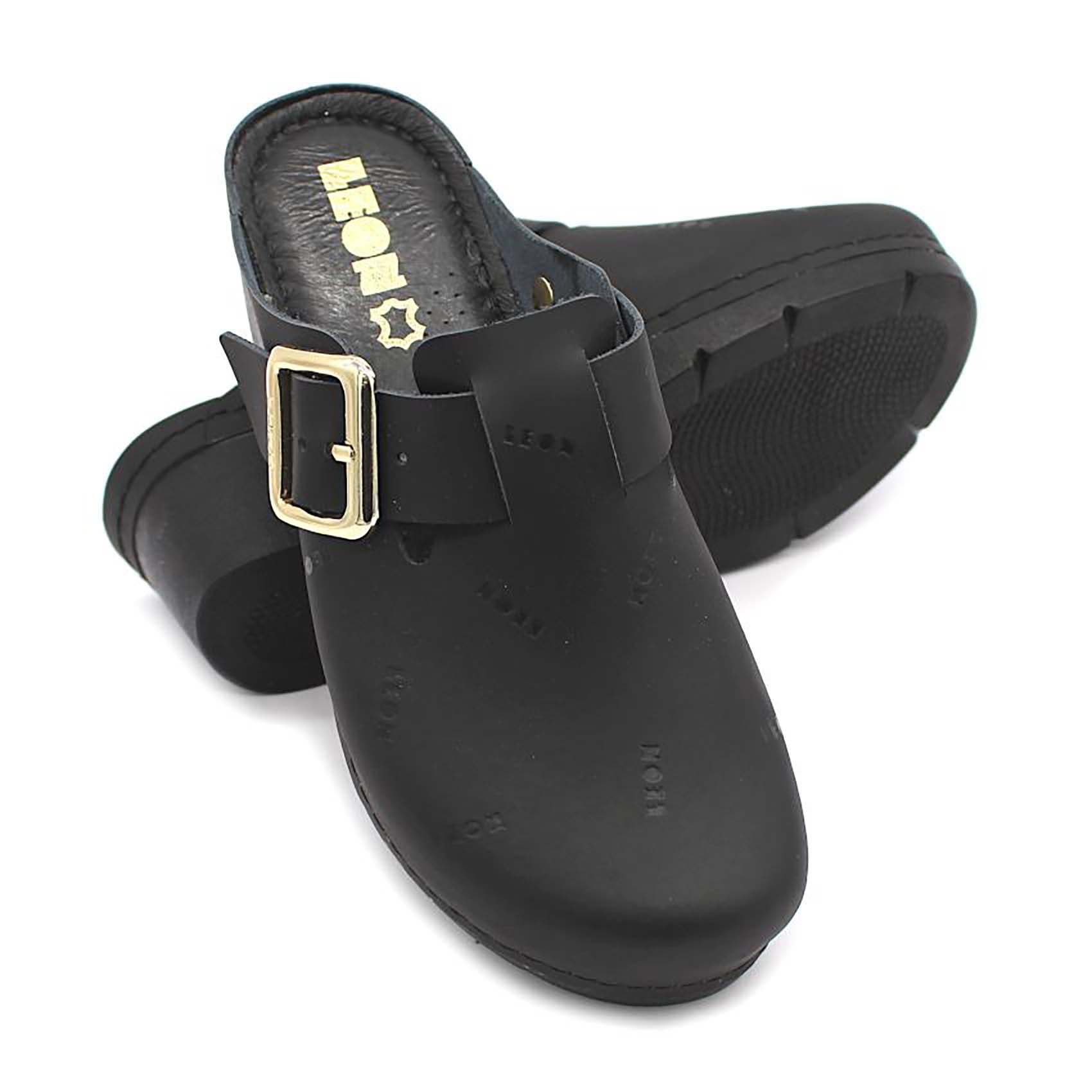 LEON 1024 Leather Sandal Clogs for Women - Black