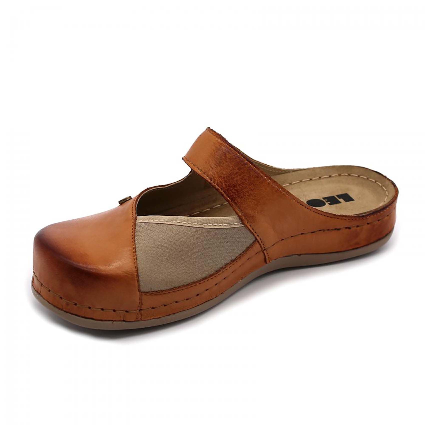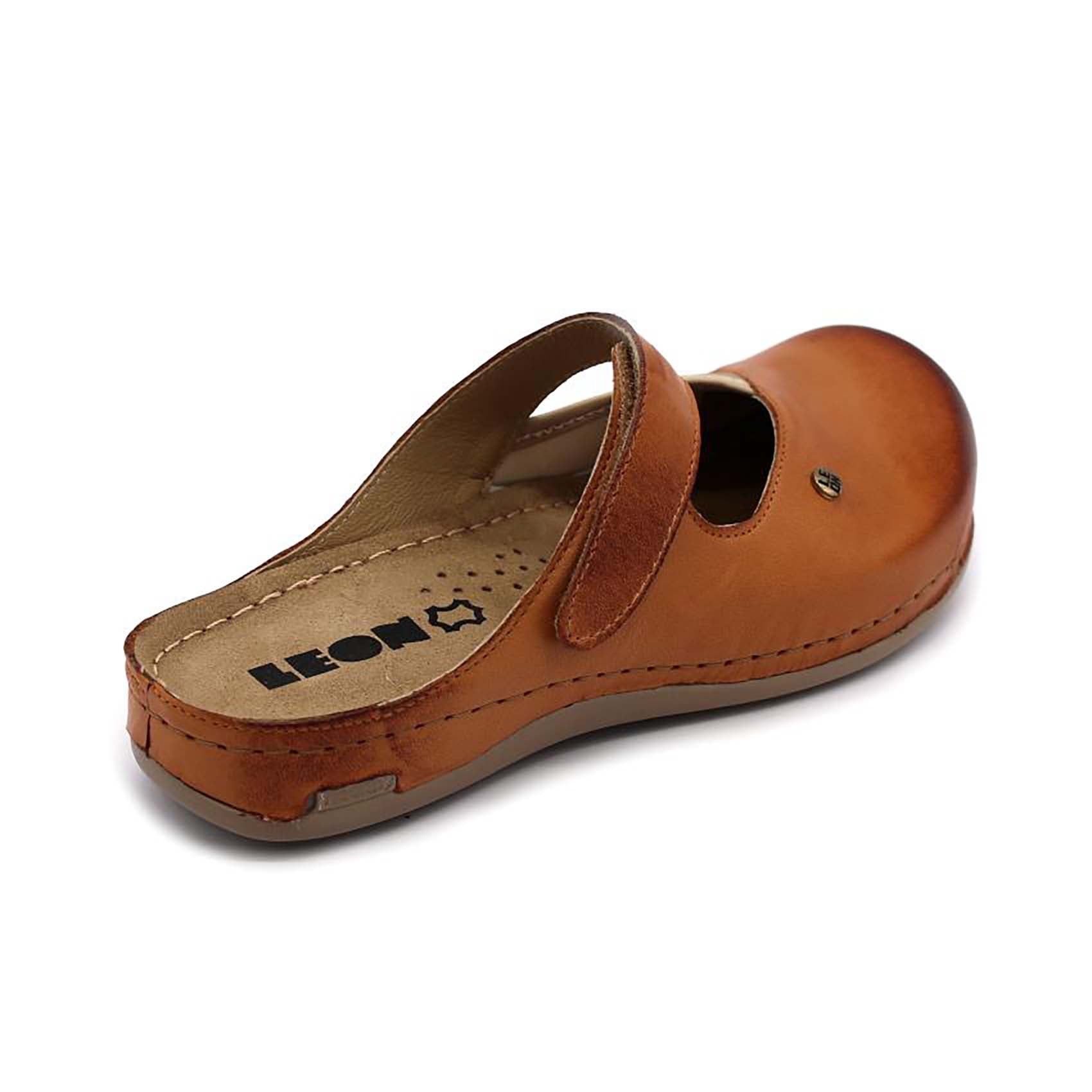 LEON 953 Leather Sandal Clogs for Women - Brown